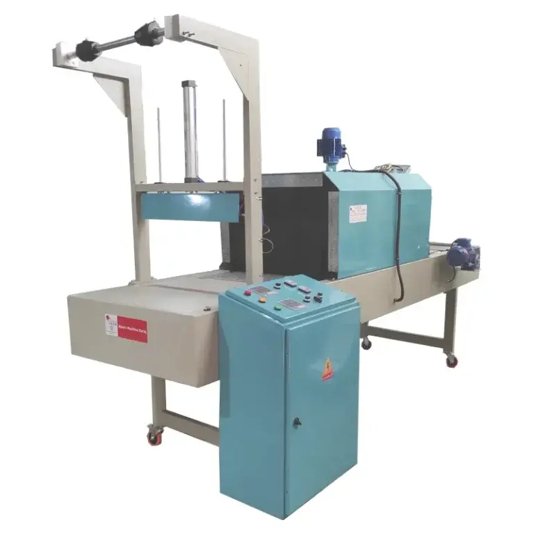 - Product loading: Products are manually placed onto a conveyor belt and covered with heat-shrinkable film.